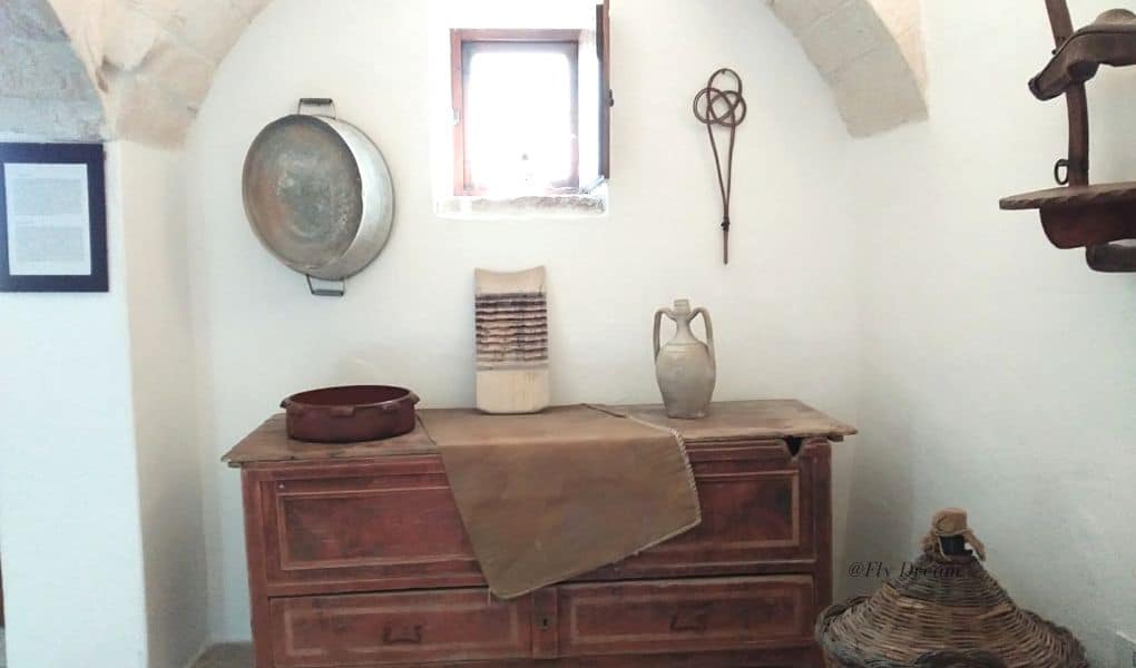 Entrare nei trulli significa anche accorgersi di quanto questi spazi fosserO angusti. Di solito formati da una sola stanza con una sola apertura, quella della porta, e dei piccoli fori a fungere da finestre. Per ottimizzare lo spazio, spesso si ricorreva a dei soppalchi.